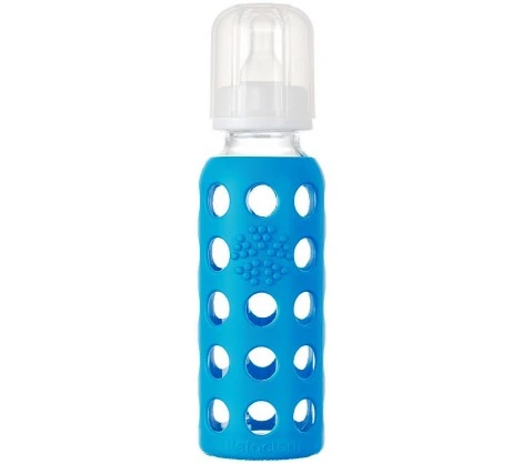 Our baby bottles are made of the highest quality, thermal shock resistant borosilicate glass. This allows our bottles to transition safely from freezer to boiling water. The silicone sleeves provide a good gripping surface for little hands and help protect against the occasional drop. – Protective medical-grade silicone sleeve provides a tactile non-slip gripping surface and helps prevent breakage – While very durable, our bottles are still glass and are not unbreakable – Dishwasher safe (place cap parts and nipple on top rack/no need to remove silicone sleeve unless desired) – As baby grows we offer a range of caps (sippy and flat) to extend the life of your bottle – Includes polypropylene (PP#5) cap, ring and stopper and silicone nipple – Compatible with most major breast pumps – All components are made in the U.S. or Europe – Product assembled in the U.S. – All materials are FDA approved – BPA-free and phthalate-free – 9 oz (250 ml) with Stage 2 (3-6 mos) nipple