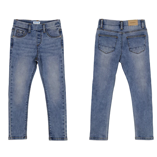 Jeggings for girl which combine the elasticity of leggings with the texture of jeans. Single button fastening. Adjustable elasticated waistband to fit the waistline perfectly. Comfortable denim fabric, perfect for everyday outfits. Functional pockets on the front and back of the item.