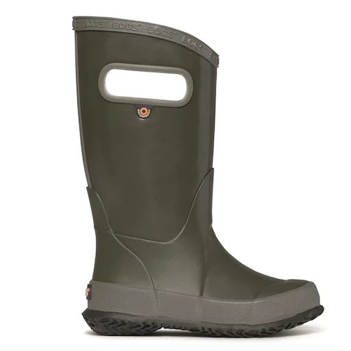 Bog Rain boot for kids is their lightest boot yet, built for warmer temps and made with an incredibly soft and flexible natural rubber upper. Easy pull-on handles and a non-slip outsole mean these boots are built to handle any serious spring kid challenge: long days digging in the dirt, puddle jumping or a game of hide and seek at recess.