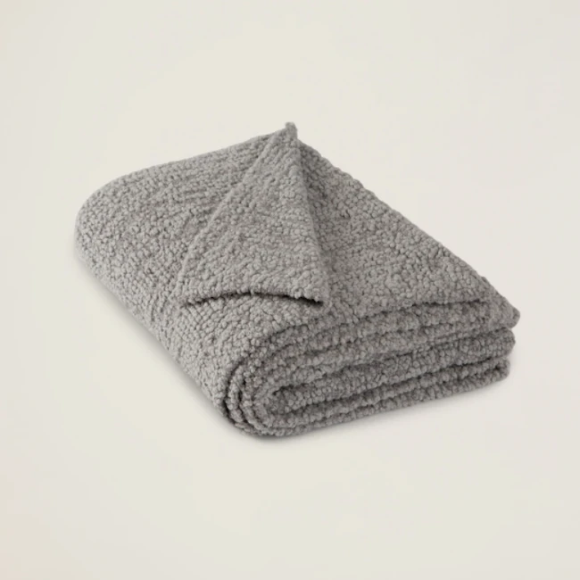 Made from our elegant looped boucle fabric and available in crisp Winter White and soft Dove Gray, this luxurious throw is a welcome addition to any home decor.