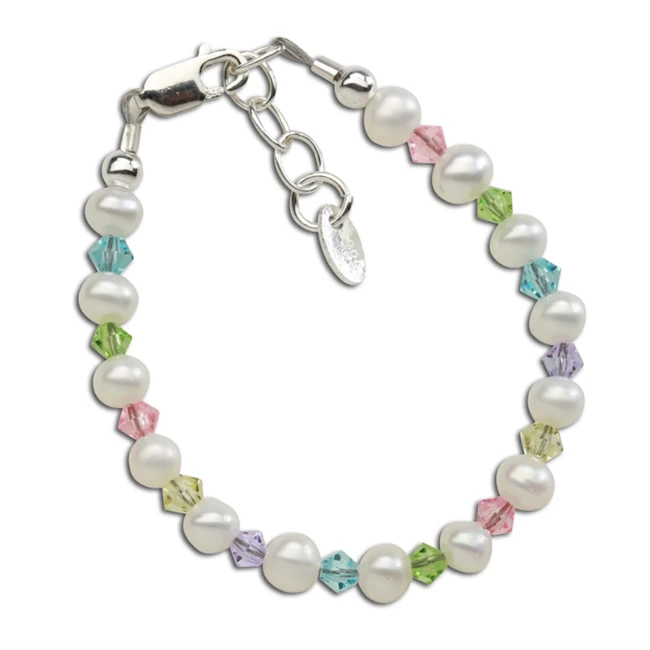 Precious sterling silver bracelet with soft white freshwater pearls and beautiful multi-color lead-free crystal – Gorgeous pearls with a touch of color! Bracelet comes in a beautiful black/pink gift box complete with bow.