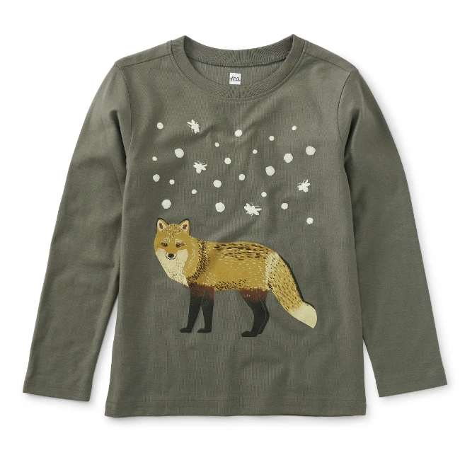 A fox and firefly friends are always ready for a fun day of play. A double-sided long sleeve tee crafted from cozy 100% soft cotton jersey.
