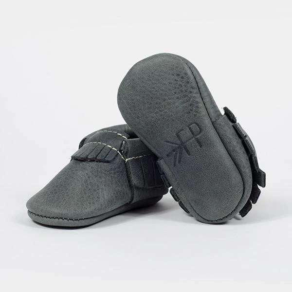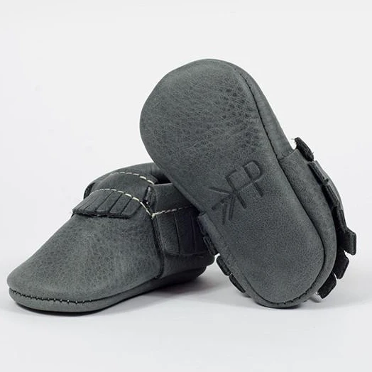 Our soft-soled moccs are made with durable, wear-tested leather and are suitable for infants and toddlers alike.