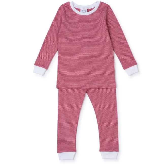 PIMA COTTON LONG SLEEVED PAJAMA TOP AND PANT SET. PANTS HAVE AN ELASTIC WAISTBAND.