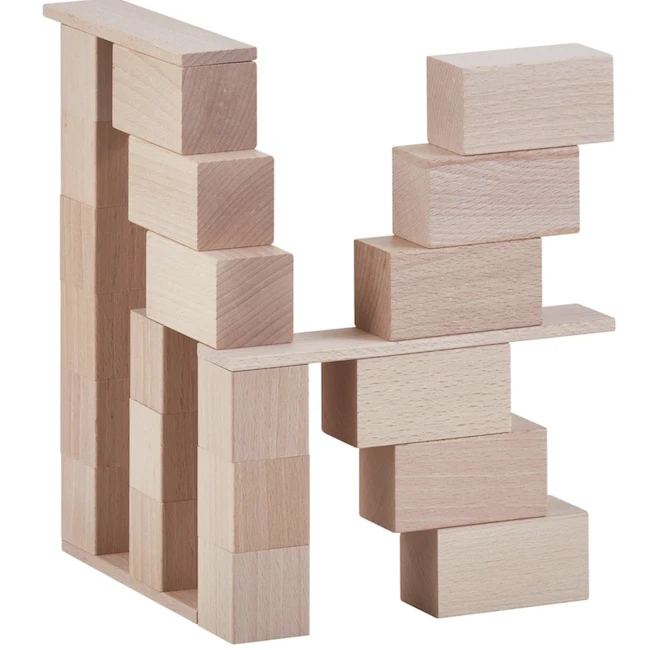 Welcome to HABA’s Clever Up! Building System. The cubes, rectangular blocks, panels and strips make it possible to build, bridge and create inclines and levels. Little stackers can build higher and bigger, developing their cognitive skills in the process. Designing and arranging creative patterns and buildings lets them explore new play options. The building blocks allow integrated construction and creative learning.