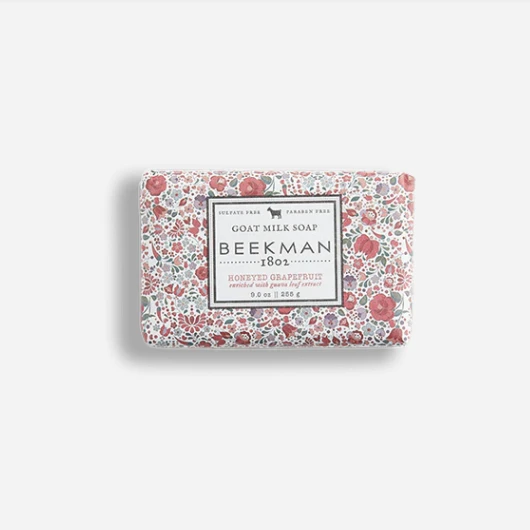 Goat milk, grapefruit, and exfoliating guava leaf combine to create a soap that’s soft in texture and brightly scented, giving your skin a natural glow. Full-sized bar soaps are 9 oz.