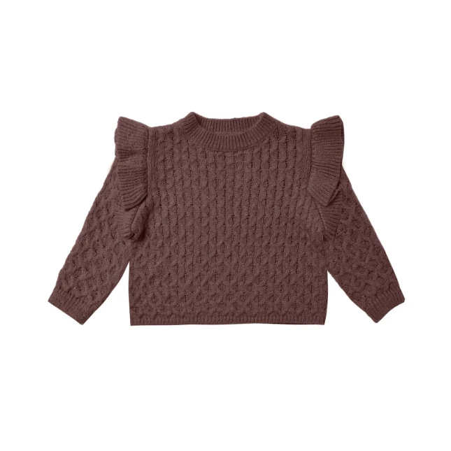 Cozy, boxy fit sweater with lovely ruffles at the shoulders in our super soft honeycomb knit.