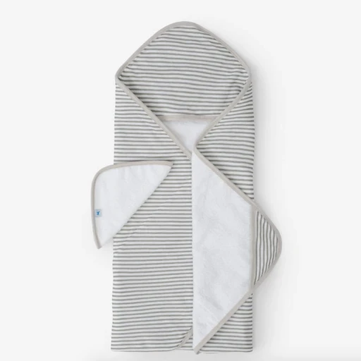 Little Unicorn GREY STRIPE HOODED TOWEL AND WASHCLOTH SET