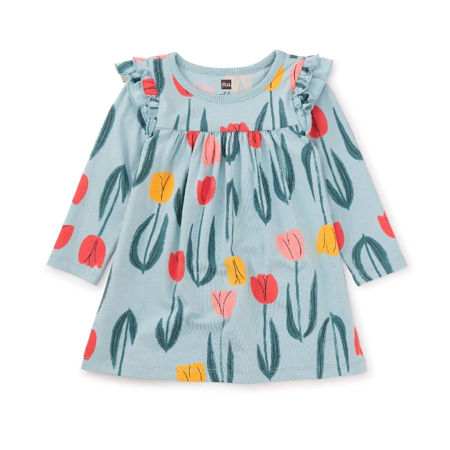 Sweet mini length, double stuff shoulder ruffles and cozy long sleeves make this dress a surefire fave for fall! Crafted from 100% soft cotton jersey.