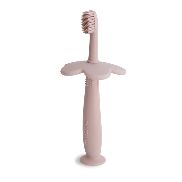 - Flower Training Toothbrush measures 2.25 x 5.5″ (5.71 x 13.97 cm)