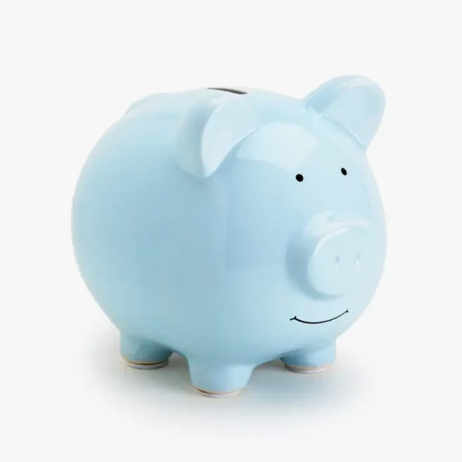 Glazed ceramic bank is perfect for any nursery or kid’s room · Large enough to hold your little Pearhead’s savings · When your little one needs to open the bank for a little fun, the rubber stopper is easy to remove