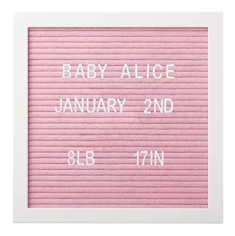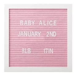 Trendy and fun, Pearhead’s letterboard set is the perfect addition to your Instagram pictures • Includes 292 letters and numbers to personalize each picture • White wooden board with pink felt • Snap a photo of the letterboard set and share with family and friends • Felt and wood • Product dimensions: 10” W x 10” H x .75” D