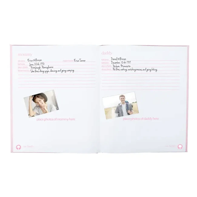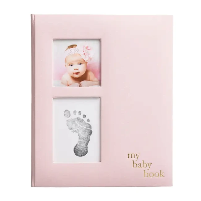 Pearhead’s pink linen baby book is the perfect keepsake to cherish every moment with your adorable little girl • Includes over 50 fill-in pages and clean-touch ink pad • Photo insert: 3″ x 3″ • Cover includes openings for both your baby’s photo and print • 100% baby safe • Easily create your baby’s precious print with the included clean-touch ink pad ensuring baby’s piggies never touch the ink • Two-time use maximum; For newborns only; Ink pads will accommodate hand/feet up to 2.25” wide x 3.5” long • Materials: cloth and paper • Product dimensions: 9″ W x 10.75″ H x .6″ D