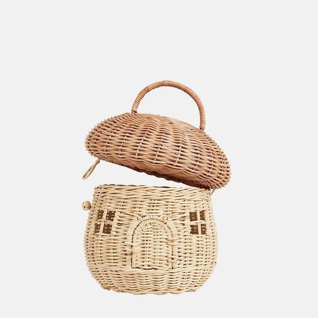 Meet the Mushroom Basket – a magical home for forest dwelling creatures, little animals, fairies, gnomes and so much more. With a generous size, adjustable handle, and a little door (which opens and shuts), kiddos can open the Mushroom top and carry teeny treasures with them wherever they go. Designed for adventures on the go, the Mushroom Basket makes the perfect portable home for little folk too! Made from 100% Natural Rattan, the Mushroom Basket has a flat base and can be displayed upright. Use it as a carry bag or decorative basket.