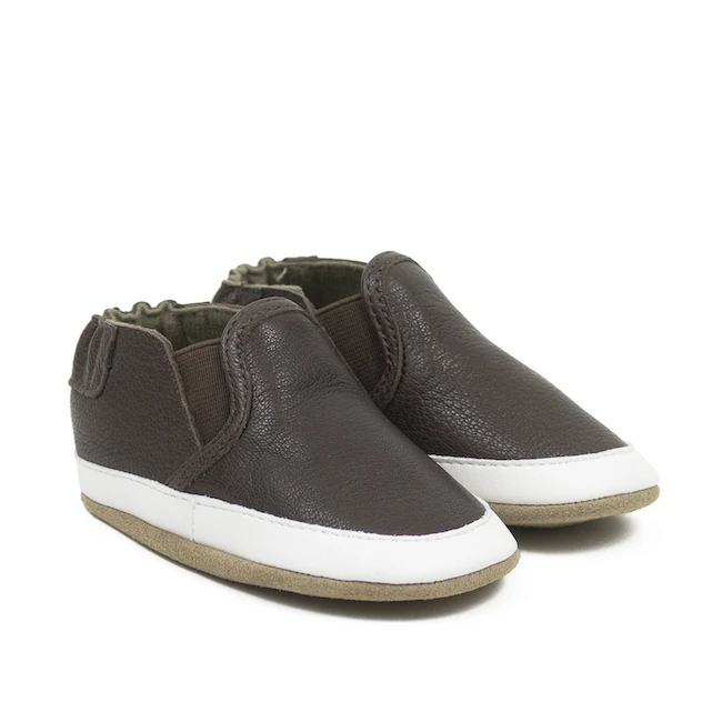 Leather with a suede soleSizing is roomy to accommodate different feet sizes and allow for growing feet Flexible and non-constricting, our baby shoes promote good balance and unrestricted growth while providing protection Non-slip suede sole helps protect your child from slipping Elasticized ankle makes this baby shoe easy to put on and stay on Lining in front half of shoe helps feet stay dry and cool Perfect shoes for Infants, Babies, Pre-Walkers and Toddlers Best for indoor use and light outdoor activity Approved by the American Podiatric Medical Association Spot clean with a mild detergent and damp cloth