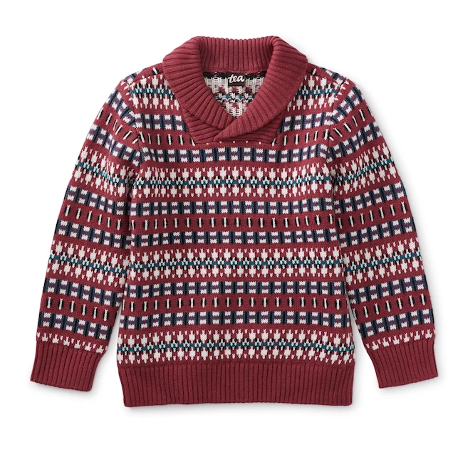 The shawl collar on this 100% cotton pullover adds a bit of grown-up style. Layer over a tee, or even button down and necktie. Long sleeve, easy fit.