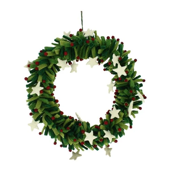 Hang this stars and berries wreath up by the fireplace or on your door and make Christmas super duper magical. Hand-crafted from 100% wool felt by artisans in India using fair trade policies, ethical manufacturing and natural materials.