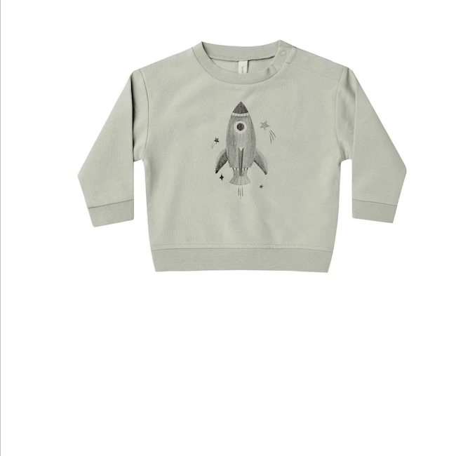Soft, cozy sweatshirt in our brushed fleece. Pairs perfectly with our Fleece Sweatpants! Sizes 0-3m – 18-24m have snap closures at the shoulder for easy changing.