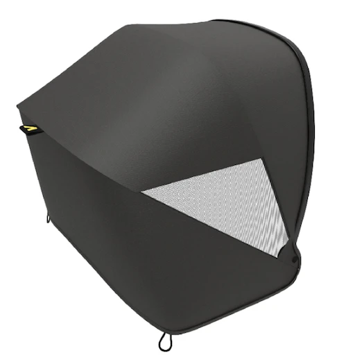 Veer’s Retractable Canopy quickly and intuitively clips onto Cruiser’s frame and easily extends up and down. One or two can be attached above either seat. A peak-a-boo window allows you to see your precious cargo and discreet, hidden magnets hold the window in the up position. Canopy works perfectly with Napper to create the perfect rest stop for young ones.