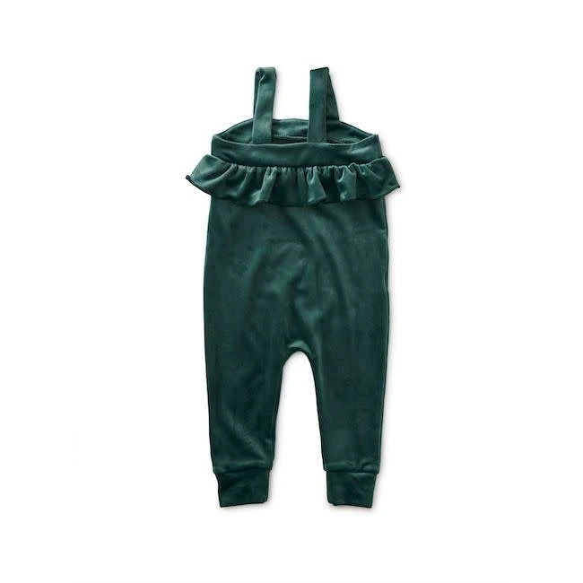 Luxe velour + bodice ruffle = a full-length romper that can easily be dressed up or down. Comfy cotton-spandex blend.